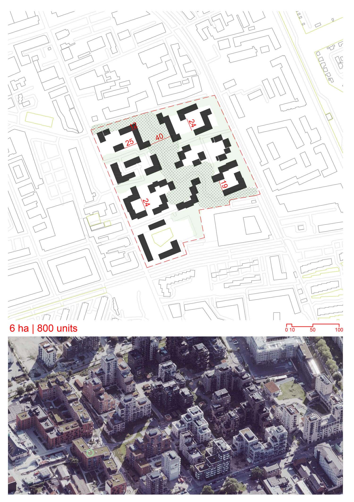 - The parcels are defined to create a sense of belonging for residents, with courtyards containing entrances, bicycle parking, drying racks, waste management, and nearby garden/play areas.