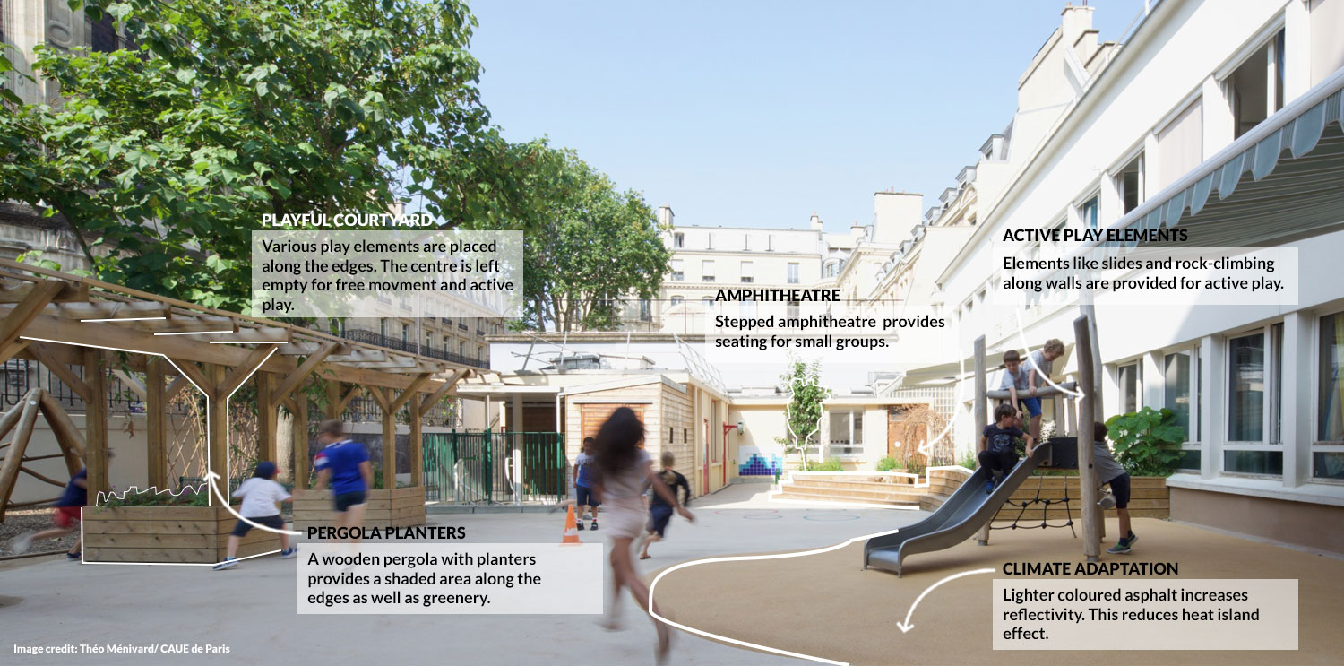 -PLAYFUL COURTYARD Various play elements are placed along the edges. The centre is left empty for free movment and active play.
